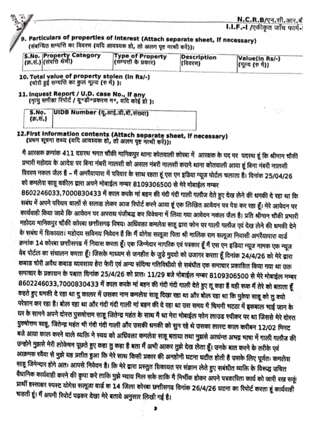 दरअसल, कमलेश साहू अवैध कबाड़ चोरी के मामले में आरोपी मुकेश साहू का भाई और वकील भी है, बिना नाम के प्रकाशित एक खबर पर मुकेश का पक्ष लेकर पत्रकार को धमकाने लगा।