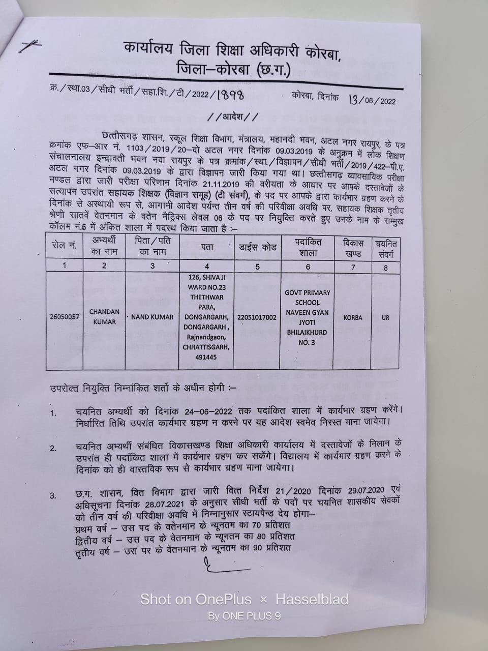 जबकि राजनांदगांव से आए पुरुष अभ्यर्थी चंदन कुमार की शहर से महज 5 किलोमीटर दूर भिलाइखुर्द क्रमांक 3 में पदस्थापना दे दी गई। अभ्यर्थियों ने पदस्थापना आदेश को अव्यवहारिक विसंगति पूर्ण बताते हुए पदाथापना आदेश संसोधित करने की गुहार लगाई है। दिव्यांग अभ्यर्थियों को भी शहर से दूर पदस्थापना कर दी गई है।