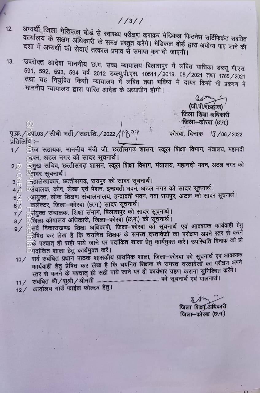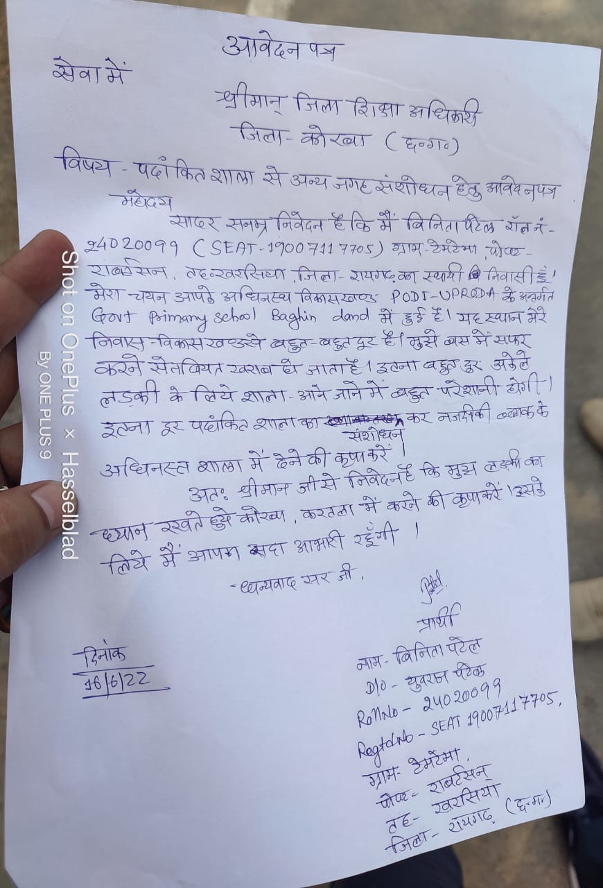 हसदेव एक्सप्रेस न्यूज कोरबा (भुवनेश्वर महतो)। हमेशा अपने क्रियाकलापों व भ्रष्टाचार को लेकर चर्चा में रहने वाला शिक्षा विभाग कोरबा एक बार फिर सुर्ख़ियों में हैं। इस बार सहायक शिक्षक विज्ञान समूह (टी संवर्ग )की पदस्थापना चर्चा का विषय बना है। जहां विभाग ने व्यापमं से सीधी भर्ती के तहत चयनित अभ्यर्थियों की पदस्थापना में नियम कायदों को ताक में रख दिया । बिना काउंसलिंग किए शिक्षा विभाग एकल पदस्थापना आदेश जारी कर महिलाओं एवं दिव्यांग अभ्यर्थियों की अनदेखी कर उन्हें शहर से 50 से 100 किलोमीटर दूर के स्कूलों में पदस्थ कर रहा । वहीं पुरुष अभ्यर्थियों को शहर के स्कूलों में पदस्थापना दे दी। नाराज अभ्यर्थियों ने डीईओ को पत्र लिखकर पदस्थापना आदेश में संसोधन कर अन्यत्र स्कूलों में पस्थापना दिए जाने की गुहार लगाई है। वायरल पत्र ने खलबली मचा दी है।