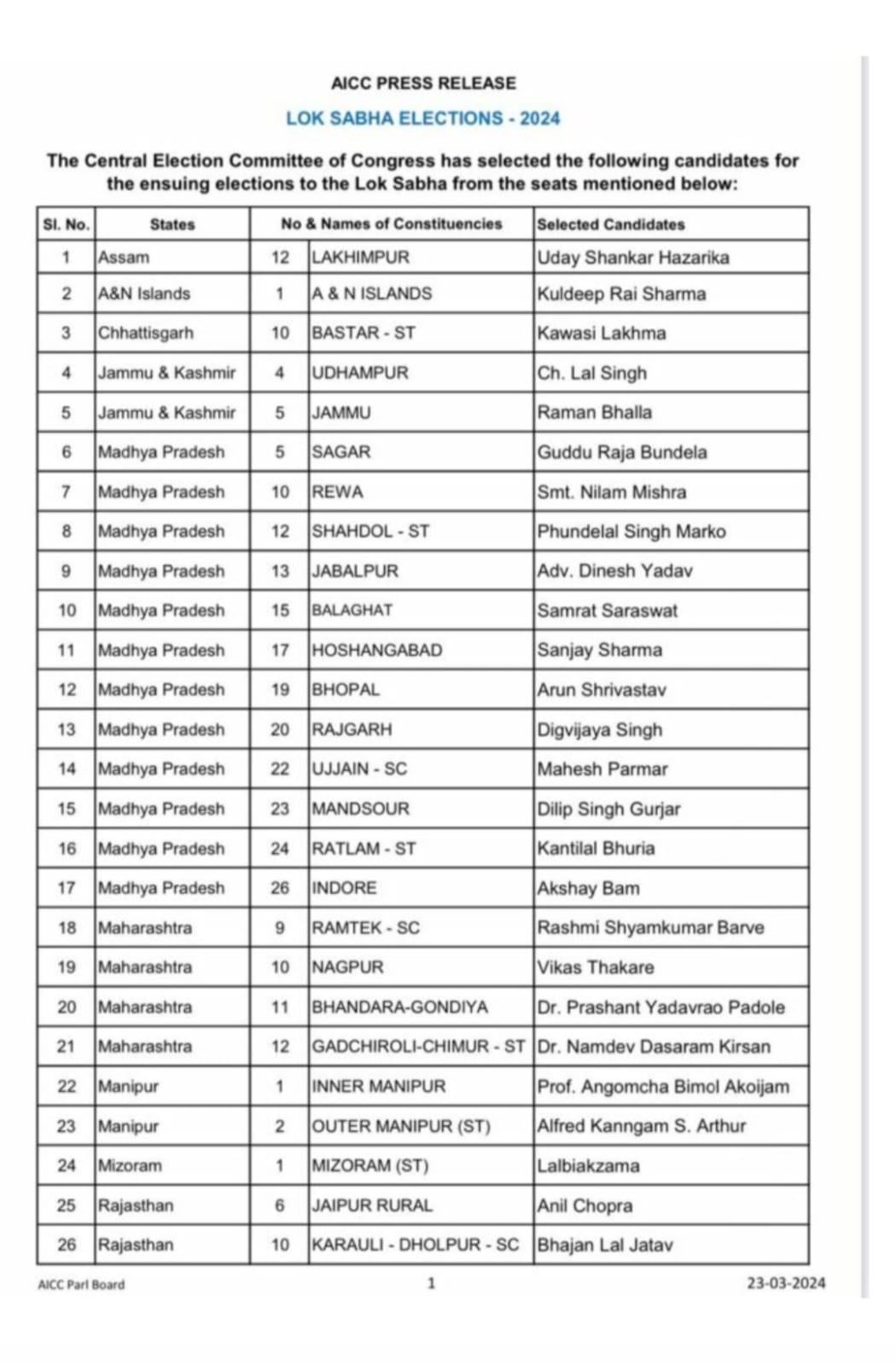 कांग्रेस के अभी भी 4 लोकसभा सीट कांकेर,बिलासपुर ,रायगढ़ एवं सरगुजा की सीट से प्रत्याशियों का ऐलान बाकी है। चर