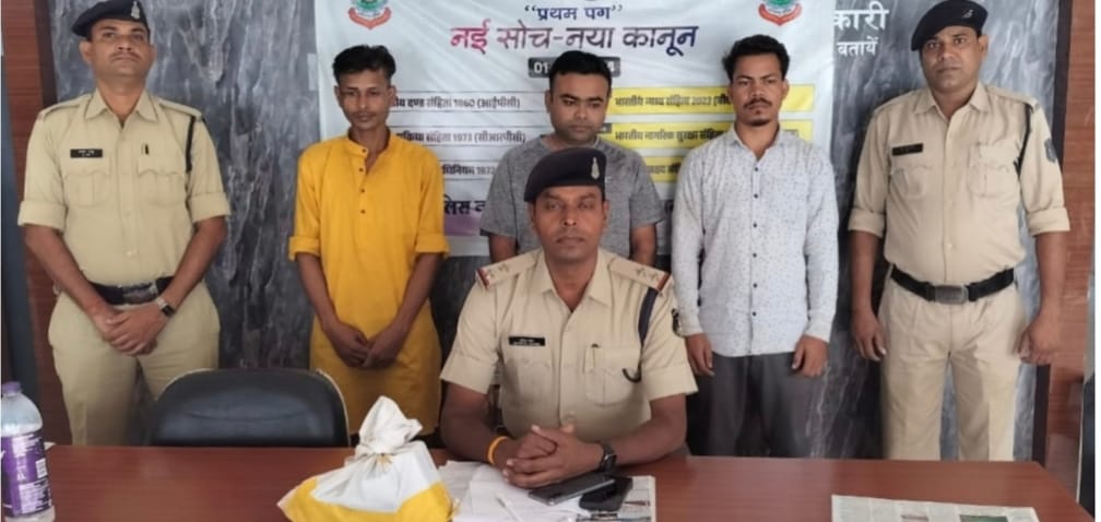 इस कड़ी में दिनांक 23.10.2024 को देहात भ्रमण दौरान के सूचना मिली कि ग्राम नवापाराकला से ग्राम मोंहदी जाने मार्ग में पुल के पास ग्राम नवापारा निवासी तुलाराम उर्फ अतुल कुम्हार अवैध रूप से काफी मात्रा में प्रतिबंधित अल्फाजोलम टेबलेट को बिक्री करने हेतु ग्राहक का इंतजार कर रहा है। सूचना पर वहां पहुंच कर घेराबंदी कर रेड कार्यवाही किया गया जहां एक व्यक्ति पुल में बैठे हुये एक सफेद पीला रंग का थैला रखा मिला। नाम-पता पूछने पर अपना नाम तुलाराम उर्फ अतुल कुंम्हार पिता स्व. शोभाराम कुम्हार 31 वर्ष निवासी ग्राम नवापाराकला का रहने वाला बताया। थैला में चार डिब्बा में 47 पता(स्ट्रिप) में कुल 2350 नग अल्फाजोलम टैबलेट कुल 2350 टैबलेट रखा मिला पर कोई वैध दस्तावेज/अनुज्ञा पत्र नही होना लिखित में दिया। आरोपी तुलाराम से कुल कीमती 5640 रुपये एवं एक मोबाईल जप्त किया। प्रतिबंधित नशीली टेबलेट के सोर्स के संबंध में तुलाराम से पूछताछ करने पर ग्राम पुटकापुरी थाना पुसौर जिला रायगढ़ निवासी सुनील निषाद पिता बोधराम निषाद से खरीदकर लाना बताया। सुनील से पूछताछ करने पर मयुर गोहिल निवासी रायगढ़ से खरीदना बताया गया। मयुर गोहिल को पकड़कर पूछताछ करने पर बताया कि वह साकेत फार्मा रायगढ़ में मैनेजर है जिसके मालिक के जानकारी बगैर अवैध कमाई करने की नीयत से उक्त नशीली टेबलेट को चोरी कर सुनील कुमार निषाद को 04 माह से सप्लाई कर रहा है। प्रकरण में अपराध क्र. 389/2024, धारा 21(A) NDPS ACT, 3(5) BNS का जुर्म दर्ज कर तीनों को न्यायिक रिमांड पर जेल भेजा गया।