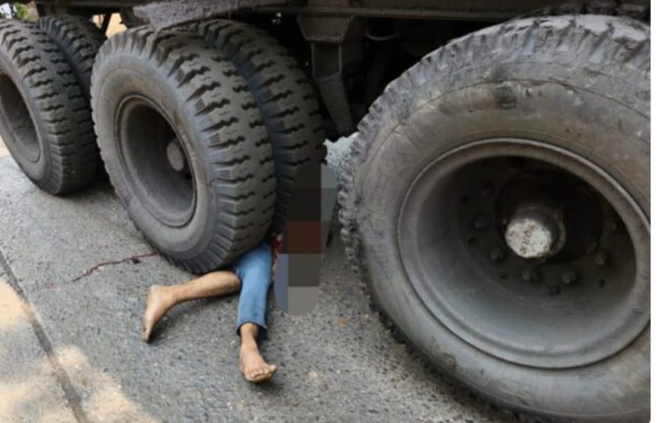 ट्रेलर के पहिए तले दबकर अक्षय के कमर के नीचे का पूरा हिस्सा टायर में फंसे हुए हालात में करीब 20 मीटर दूर घिसटता रहा और कमर के ऊपर का कुचला हुआ हिस्सा बीच सड़क पर पड़ा रहा।